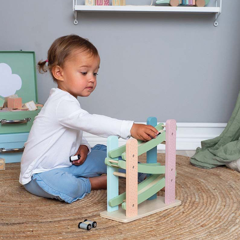 Ξύλινη διαδρομή με τρία αυτοκινητάκια, από την Jabadabado. Πρόκειται για ένα μοναδικό διασκεδαστικό παιχνίδι που εντυπωσιάζει όλα τα παιδιά και μπορεί να τα απασχολήσει για αρκετή ώρα. Τοποθετήστε τα αυτοκινητάκια στην κορυφή της πίστας και ο αγώνας ξεκινά!