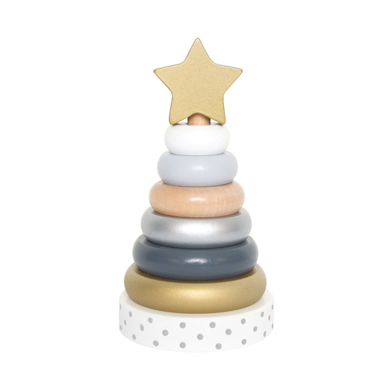 Ξύλινη πυραμίδα στοίβαξης με χρωματιστούς κρίκους, από την Jabadabado. Οι κρίκοι είναι σχεδιασμένοι ώστε να μπορούν να τους πιάνουν με τα μικρά τους χεράκια και με διαφορετικά χρώματα για να μπορούν να ξεχωρίζουν τα χρώματα, τα μεγέθη και τα σχήματα. Βοηθάει να εξασκήσουν τη λεπτή κινητικότητα και να συντονίσουν τα χέρια τους με την όραση τους. Εύκαμπτη ράβδος για μεγαλύτερη ασφάλεια και το κεφαλάκι του λαγουδιού στη κορυφή.