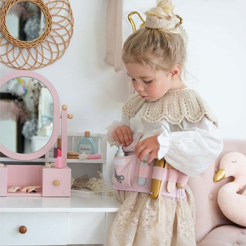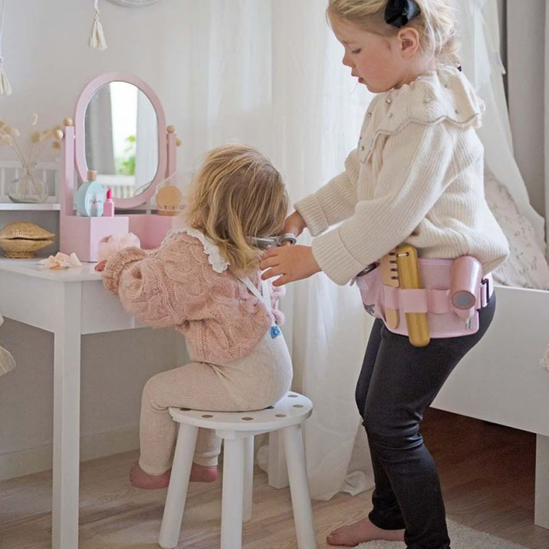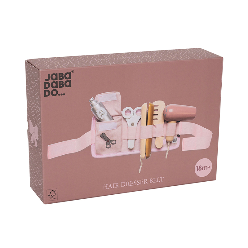 Ζώνη με είδη κομμωτηρίου, από την Jabadabado. Τα μικρά κορίτσια έχουν πλέον τα δικά τους εργαλεία για την περιποίηση των μαλλιών τους που είναι απολύτως ασφαλή και μπορούν να απασχολούνται για αρκετή ώρα. Τώρα μπορείτε να δέσετε την ζώνη στην μέση σας και να την μεταφέρετε παντού μαζί σας.