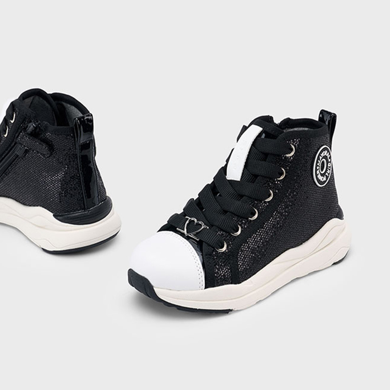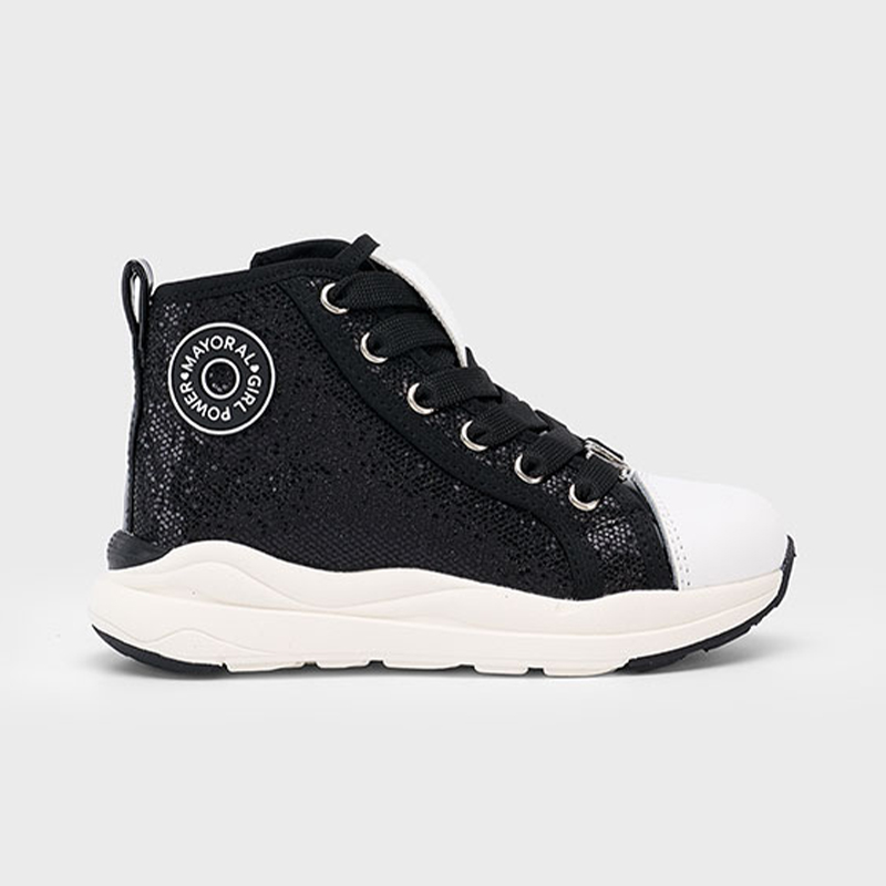 Παιδικά Casual-Σπορ μποτάκια από την Mayoral που συνδυάζονται με όλα τα look. Με κορδόνια και φερμουάρ στο πλάι για τέλεια εφαρμογή. Οι πούλιες δίνουν έξτρα λάμψη και στυλ σε όλα τα ντυσίματα. Εξωτερικά είναι κατασκευασμένα από συνθετικό υλικό, ενώ εσωτερικά διαθέτουν υφασμάτινη επένδυση για προστασία από το κρύο και μαλακό πάτο. Η εύκαμπτη και αντιολισθητική σόλα προσφέρει μέγιστη άνεση και σταθερότητα.