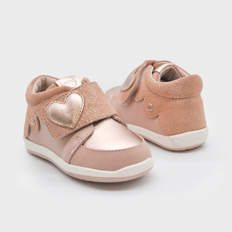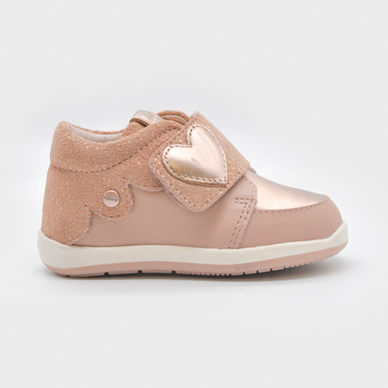 Δερμάτινα και ανατομικά Sneakers από την Mayoral για μοναδικές Casual ή σπορ εμφανίσεις. Μαλακά παπούτσια, κατάλληλα για τα πρώτα τους βήματα, κατασκευασμένα από εξολοκλήρου από δέρμα και μη τοξικά υλικά. Ότι καλύτερο θα μπορούσε να φορέσει ένα παιδί από 6 μηνών+, για να την διαμόρφωση του ποδιού του. Με βέλκρο για τέλεια εφαρμογή.