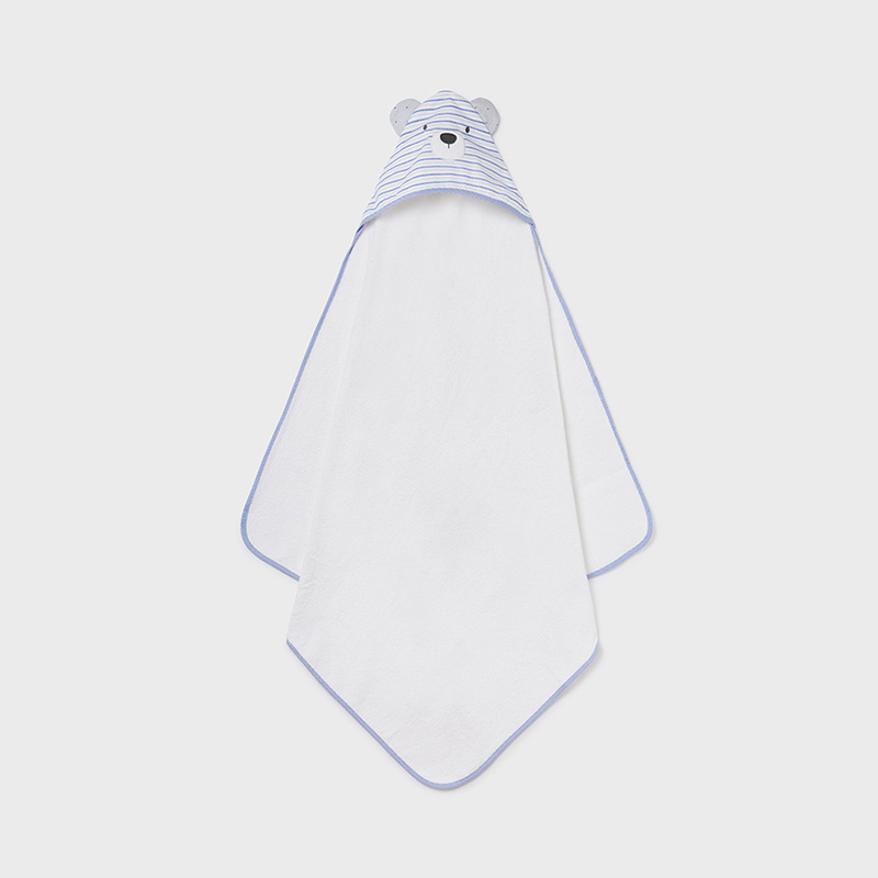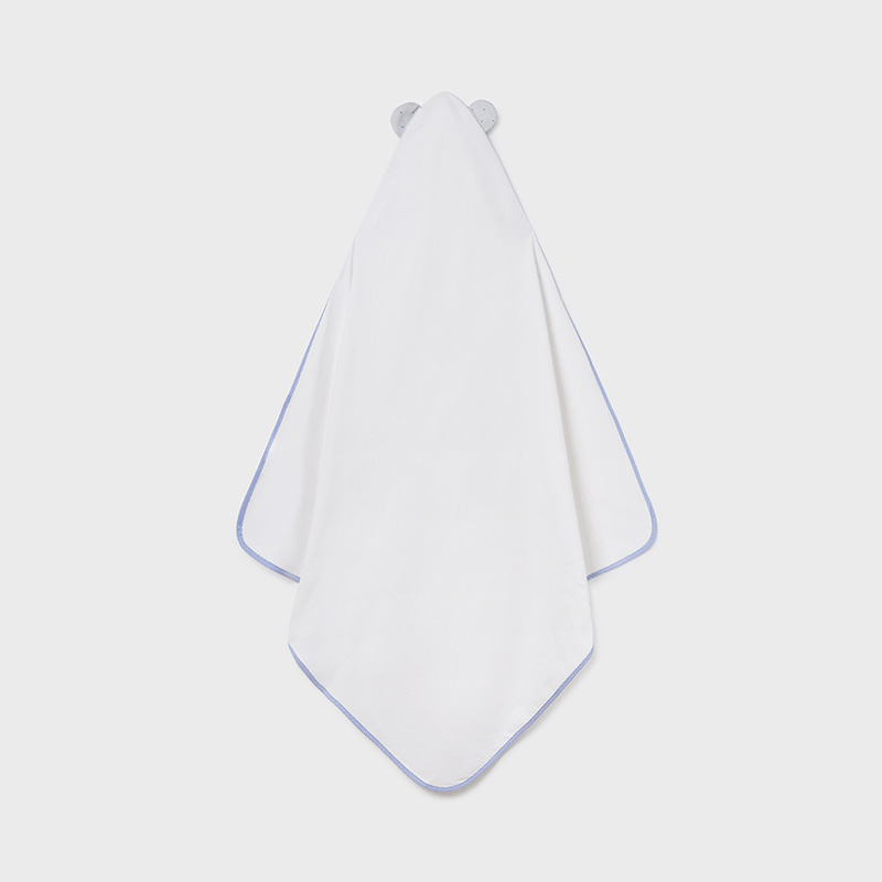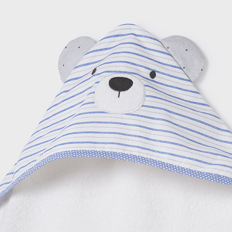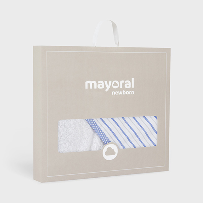 Μπουρνούζι τρίγωνο με κουκούλα από την Mayoral. Τυλίξτε το μωρό μετά το μπάνιο και φορέστε του την κουκούλα για να μην κρυώσει. Διατίθεται σε κουτί, ιδανικό για να το προσφέρετε για δώρο. Ρούχο ECOFRIENDS που περιέχει βιώσιμο βαμβάκι.