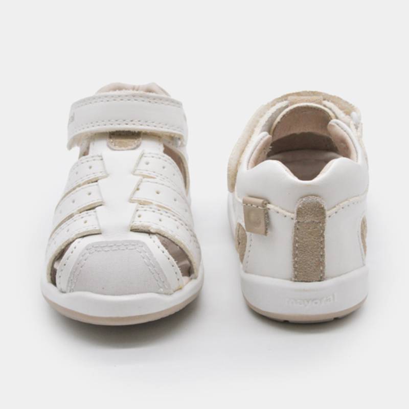 Δερμάτινα και ανατομικά παπουτσοπέδιλα από την Mayoral για μοναδικές εμφανίσεις. Μαλακά παπούτσια, κατάλληλα για τα πρώτα τους βήματα, κατασκευασμένα από εξολοκλήρου από δέρμα και μη τοξικά υλικά. Ότι καλύτερο θα μπορούσε να φορέσει ένα παιδί από 6 μηνών+, για να την διαμόρφωση του ποδιού του. Με βέλκρο για τέλεια εφαρμογή.