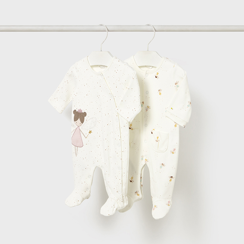 Σετ δύο φορμάκια μακρυμάνικα για νεογέννητο κορίτσι εως 18μηνών. Είναι βαμβακερά, ότι καλύτερο για το δερματάκι του μωρού σας. Το ένα είναι με κούμπωμα στο πλάι με κόπιτσες ενώ το άλλο κουμπώνει μπροστά με τον ίδιο τρόπο, για να είναι ευκολοφόρετα. Επίσης κλείνουν με κόπιτσες στον καβάλο για να μπορείτε να αλλάζετε εύκολα το μωράκι σας, χωρίς να χρειάζεται να το ξεντύσετε τελείως. Τα μεγάλα μεγέθη σε αυτόν τον οδηγό (12 και 18 μηνών) έχουν αντιολισθητική σόλα.