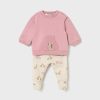 Σετ παντελόνι και μπλουζάκι μακρυμάνικο για νεογέννητο κορίτσι εως 18 μηνών. Το Σετ περιλαμβάνει ένα παντελονάκι και μπλουζάκι φούτερ με σχέδιο που ταιριάζουν τέλεια μεταξύ τους. Το παντελόνι διαθέτει λάστιχο στη μέση ενώ η μπλούζα κλείνει με κουμπιά κόπιτσες στο πλάι. Πρόκειται για ένα σετάκι ευκολοφόρετο τόσο για μέσα στο σπίτι, όσο και στις καθημερινές βόλτες. Μπορούν να φορεθούν και ξεχωριστά και να δημιουργήσετε τα δικό σας look. Τα σετ ρούχων της Mayoral είναι η ιδανική επιλογή για τα ντυσίματα των μικρών μας φίλων. Τα μεγάλα μεγέθη (από 6-9 έως 18 μηνών) δεν έχουν κλειστό πέλμα, για μεγαλύτερη ευκολία στην κίνηση και μεγαλύτερη άνεση στην χρήση.