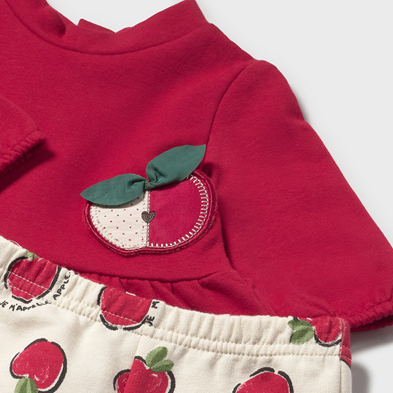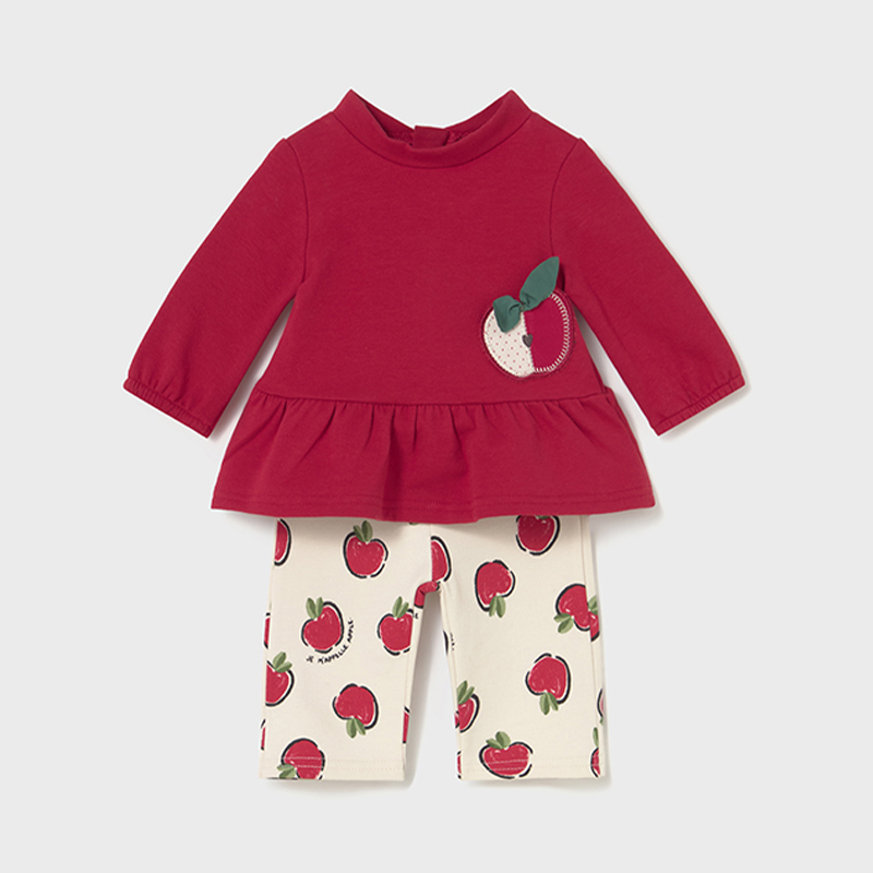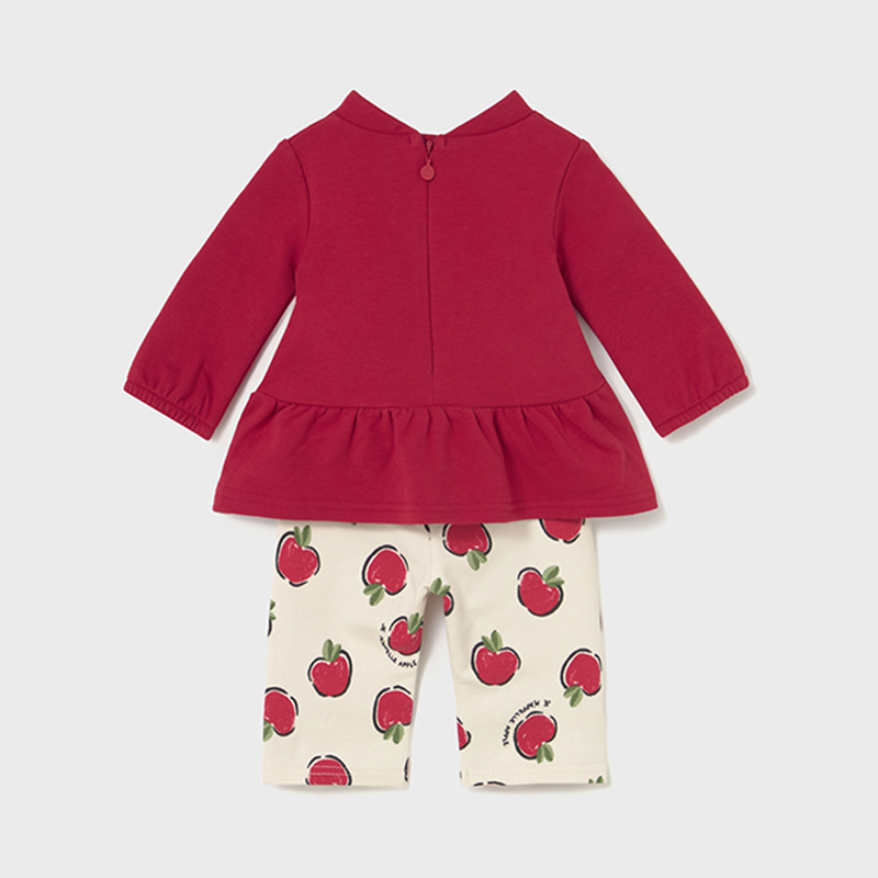 Σετ παντελόνι με μπλούζα μακρυμάνικη, φούτερ για νεογέννητο κορίτσι εως 18 μηνών από την Mayoral. Η μπλούζα κλείνει με φερμουάρ πίσω, ενώ το παντελόνι διαθέτει λάστιχο στην μέση για τέλεια εφαρμογή. Μπορείτε να τα φορέσετε μαζί ή και ξεχωριστά και να δημιουργήσετε τα δικά σας look.Συνδυάστε το με τα παπουτσάκια της συλλογής Newborn και ολοκληρώστε το ντύσιμο σας.