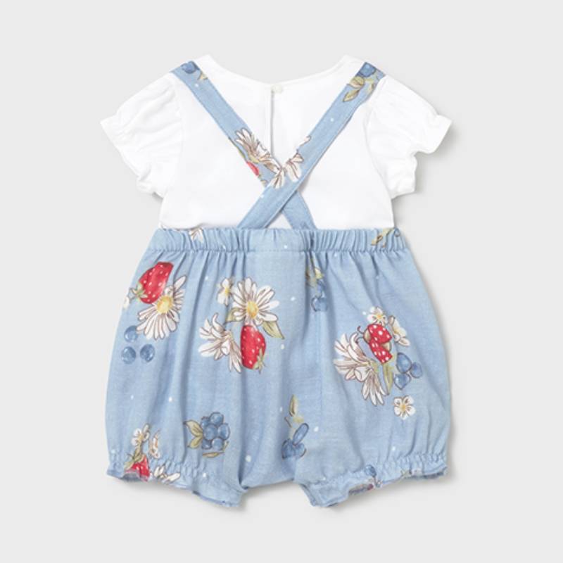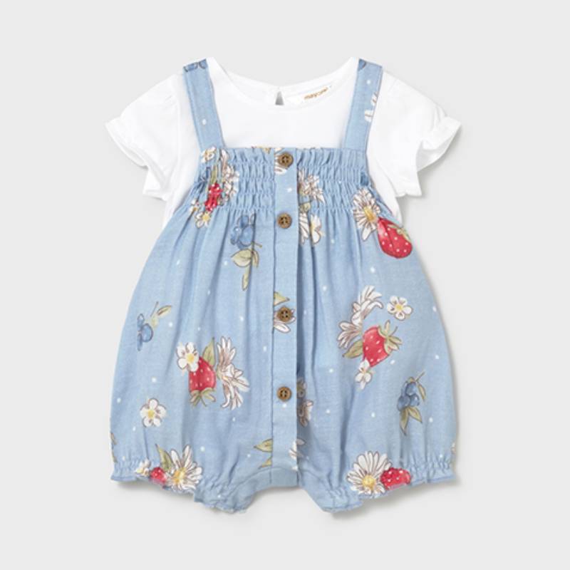 Σετ φορμάκι σαλοπέτα και μπλουζάκι μακό, για νεογέννητο κορίτσι εως 18 μηνών από την Mayoral. Πρόκειται για ένα σετάκι ευκολοφόρετο τόσο για μέσα στο σπίτι, όσο και στις καθημερινές βόλτες. Η μπλούζα κλείνει με κουμπί πίσω για ευκολία στο ντύσιμο, ενώ η σαλοπέτα διαθέτει κούμπωμα με κόπιτσες στον καβάλο, ώστε να μπορείτε να αλλάξετε πάνα στο μωρό χωρίς να χρειάζεται να το ξεντύσετε τελείως. Μπορούν να φορεθούν και ξεχωριστά και να δημιουργήσετε τα δικό σας look. Τα σετ ρούχων της Mayoral είναι η ιδανική επιλογή για τα ντυσίματα των μικρών μας φίλων.