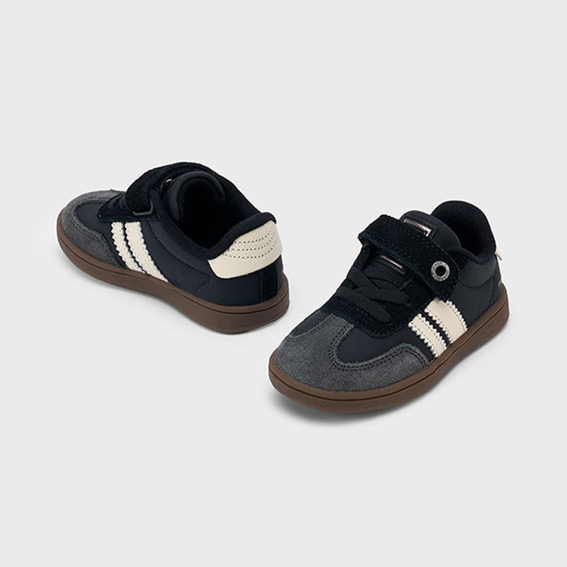 Παιδικά Sneakers από την Mayoral που συνδυάζονται με όλα τα look. Με βέλκρο και ελαστικά κορδόνια για τέλεια εφαρμογή. Εξωτερικά είναι κατασκευασμένα από συνθετικό υλικό και δέρμα, ενώ εσωτερικά διαθέτουν υφασμάτινη επένδυση και μαλακό πάτο. Με εύκαμπτη και αντιολισθητική σόλα που προσφέρει μέγιστη άνεση και σταθερότητα.