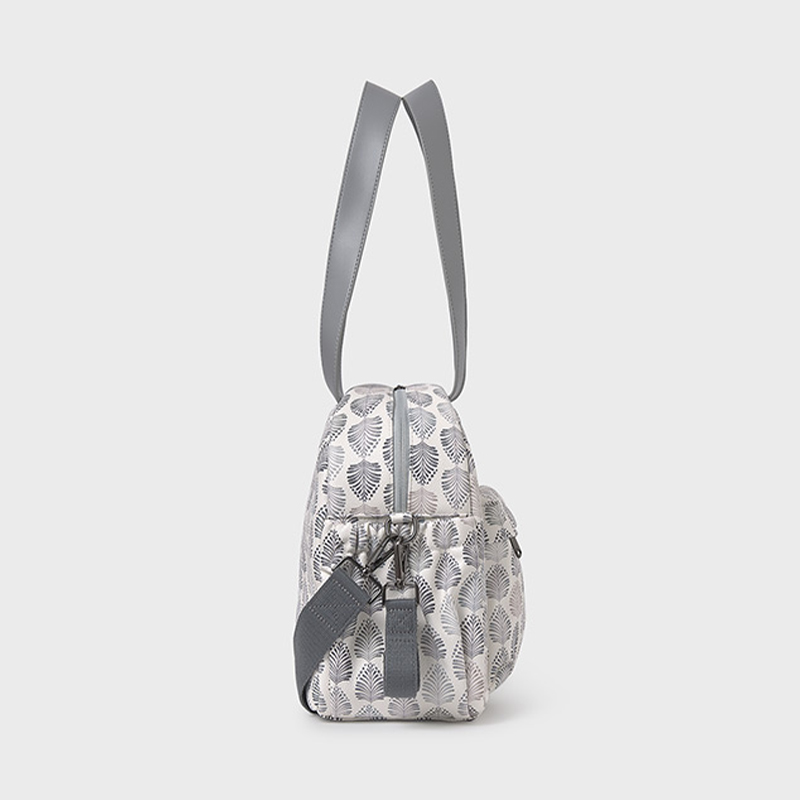 Τσάντα από την Mayoral. Για να μεταφέρετε όλα τα απαραίτητα σε κάθε σας εξόρμηση με το μωρό σας. Ανοίγει με φερμουάρ και διαθέτει χειρολαβές, αποσπώμενο ιμάντα ώμου και λουράκια κρέμασης για το καρότσι. Διαθέτει επίσης αρκετές θήκες εσωτερικά και εξωτερικά για καλύτερη οργάνωση. Εσωτερικά η μια θήκη είναι ισοθερμική για να τοποθετείτε την τροφή του μωρού και να την κρατάει σε σωστή θερμοκρασία. Επίσης διαθέτει μια μικρή θήκη για την πιπίλα του μωρού, για εύκολη και άμεση πρόσβαση. Συνδυάστε την με τα υπόλοιπα αξεσουάρ και δημιουργήστε ένα υπέροχο και ταυτόχρονα πρακτικό σετ για τη μεταφορά των απαραίτητων πραγμάτων του μωρού σας.