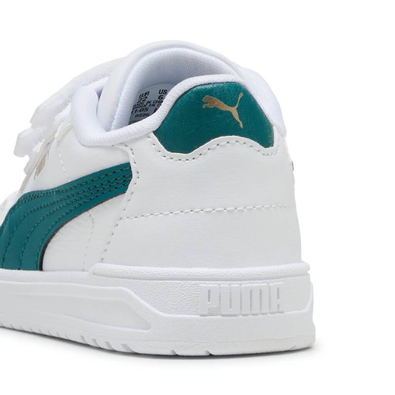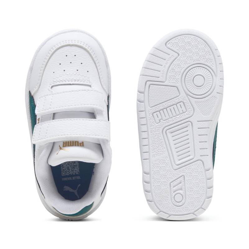 Λευκά sneakers από την Puma. Με βέλκρο για τέλεια εφαρμογή. Πολύ μαλακό παπούτσι, με αφαιρούμενο μαλακό πάτο kinderfit για απόλυτη άνεση καθόλη την διάρκεια της ημέρας. Το άνω μέρος είναι από συνθετικό δέρμα ενώ στο μπροστινό μέρος διαθέτει τρυπούλες για να αναπνέει καλύτερα το πόδι. Διαθέτουν αντιολισθητική και εύκαμπτη σόλα για μέγιστη ασφάλεια.