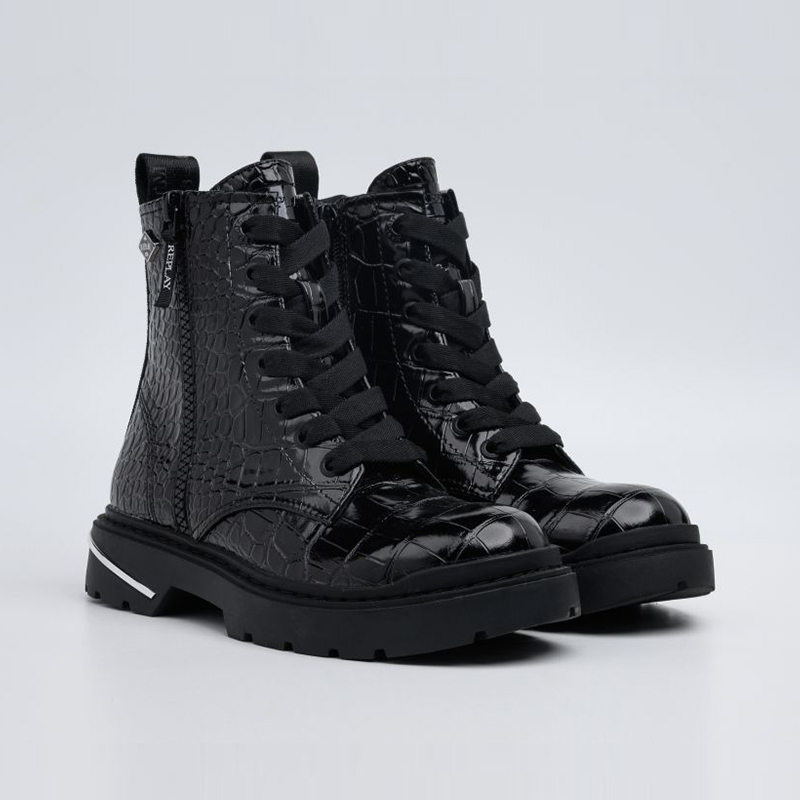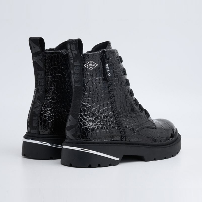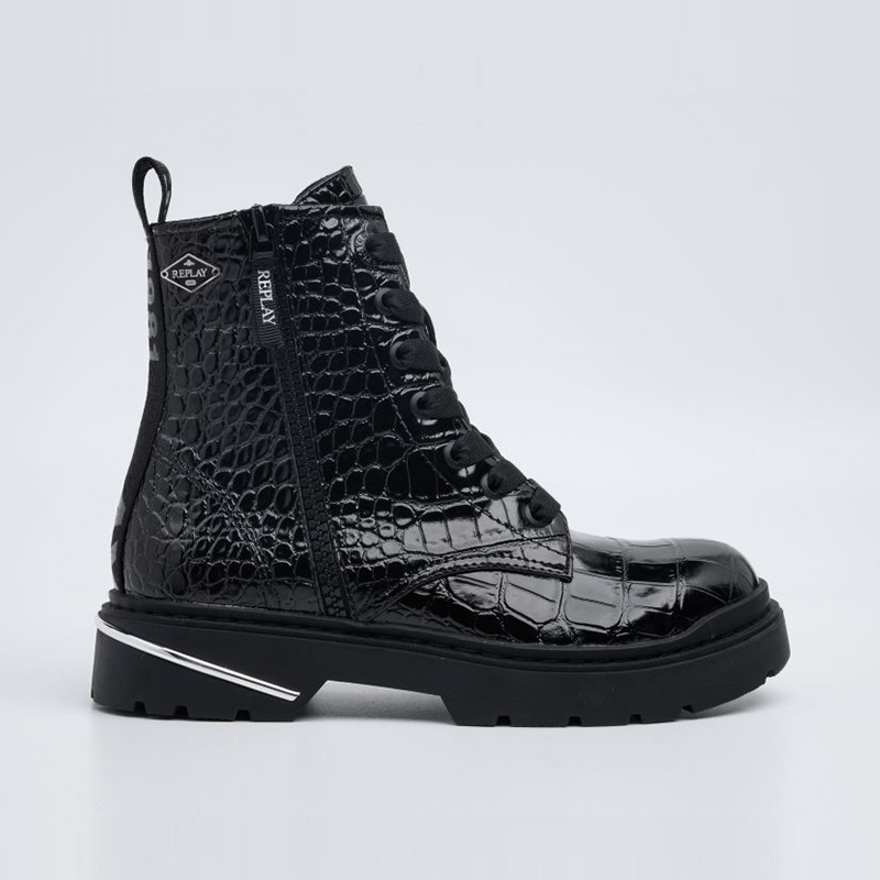 Παιδικά μποτάκια-αρβυλάκια από την Replay. Με κορδόνια και φερμουάρ στο πλάι για τέλεια εφαρμογή. Η ιδανική επιλογή για όλα τα ντυσίματα ενός παιδιού. Οι μεταλλικές λεπτομέρειες σε συνδυασμό με το κροκό δέρμα τα κάνουν άκρως εντυπωσιακά. Διαθέτουν μαλακό πάτο καθώς και εύκαμπτη αντιολισθητική, τρακτερωτή σόλα.